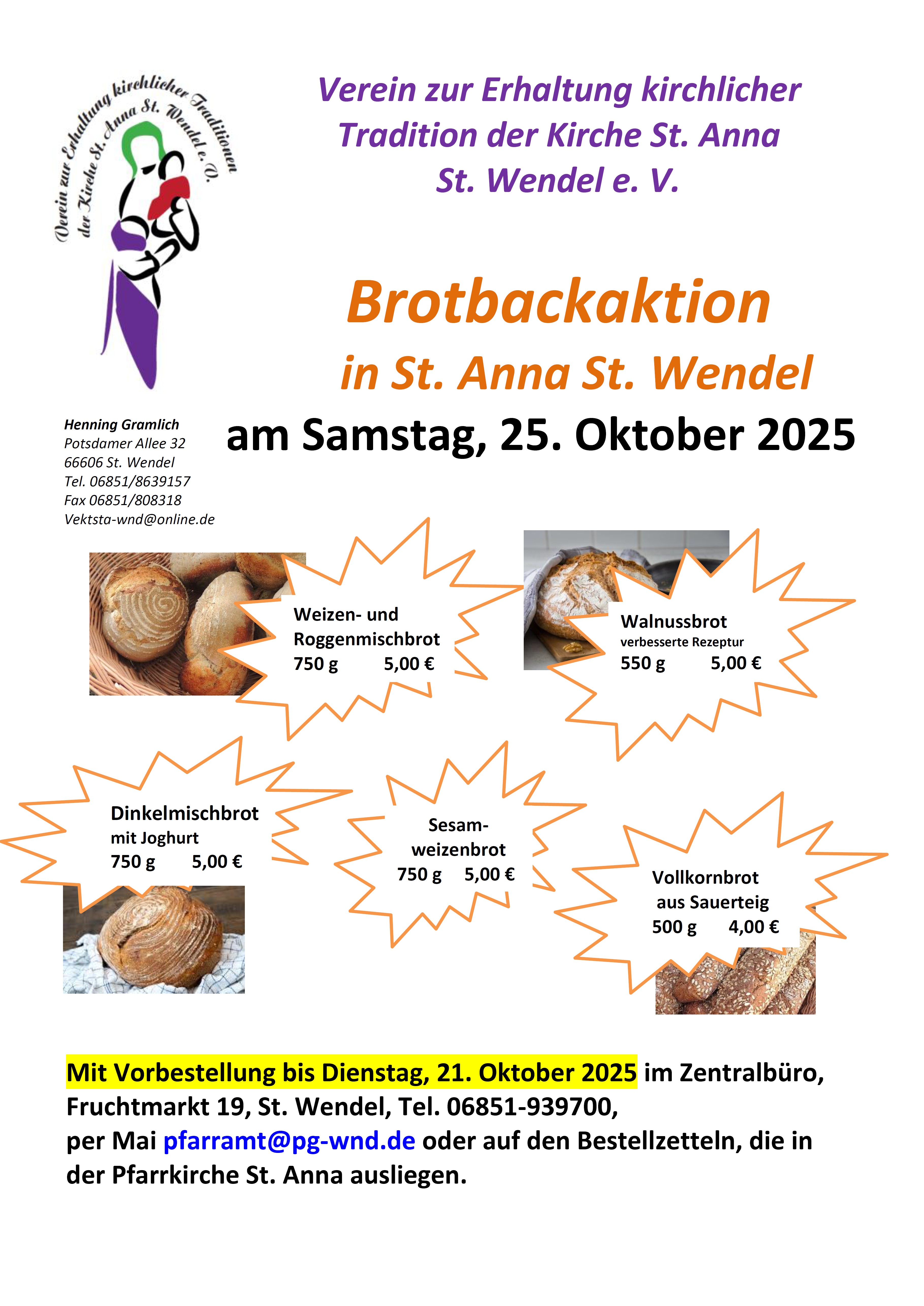 Damit wir ein wenig planen können, bitten wir um Anmeldung bis Dienstag, 7. Oktober 2025 im Zentralbüro an der Basilika in St. Wendel, Telefon 06851/939700 oder per Mail: pfarramt@pg-wnd.de wird gebeten.