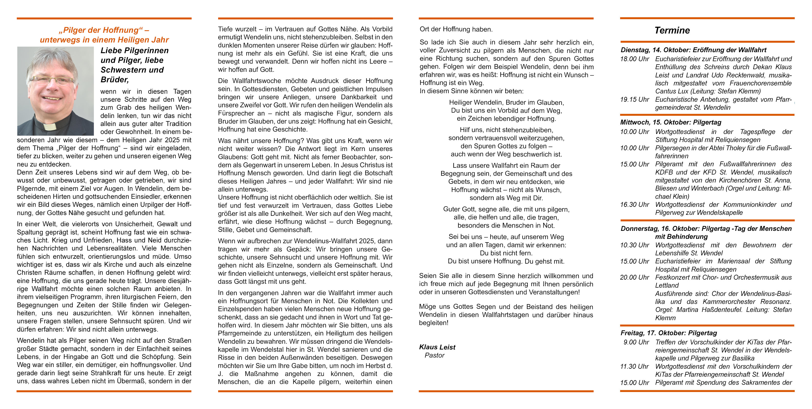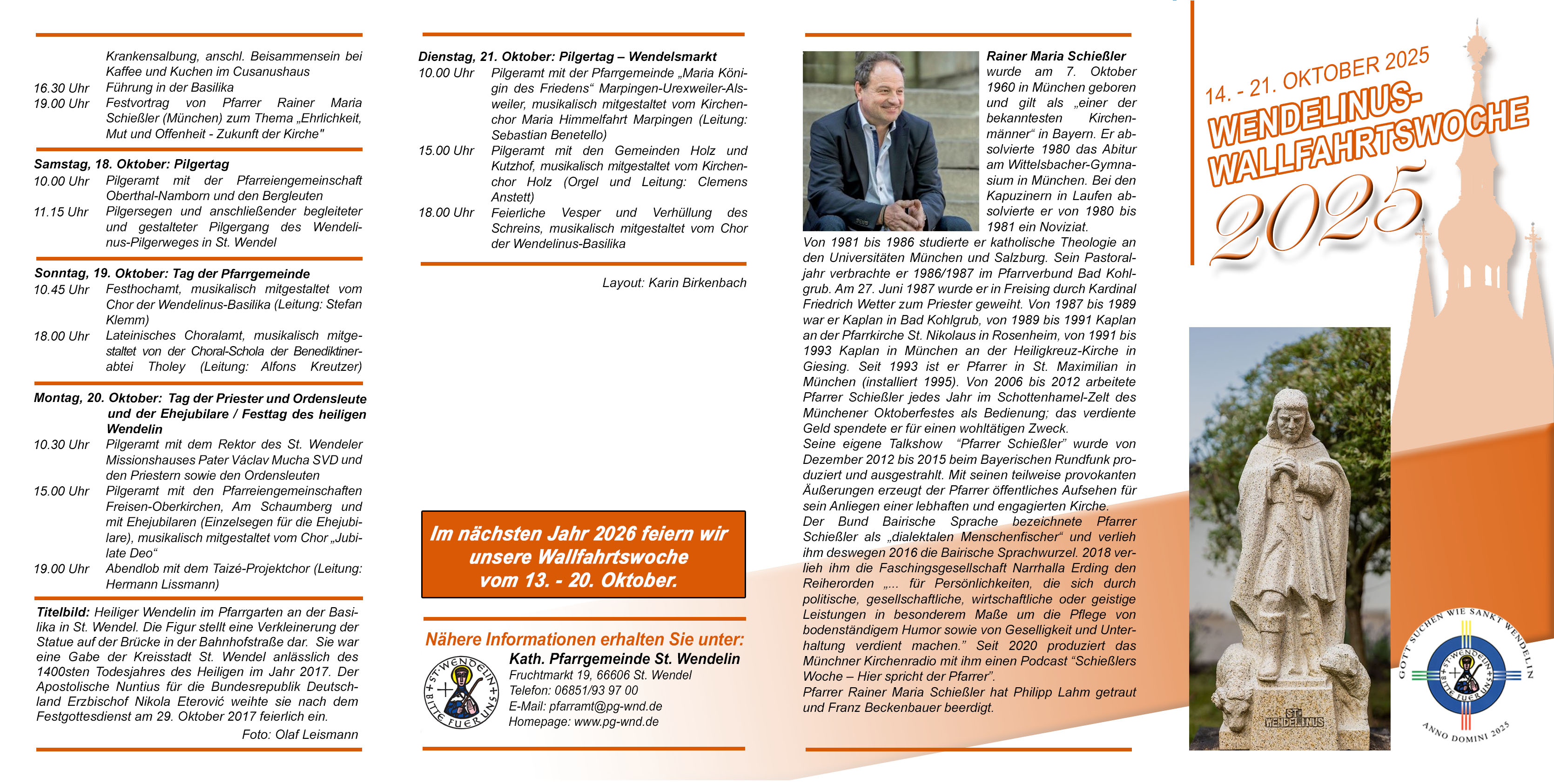 Herzliche Einladung zur Wendelinus-Wallfahrtswoche 2025